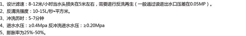 | 反洗膨脹率;(%) | 40-50% | |||||||